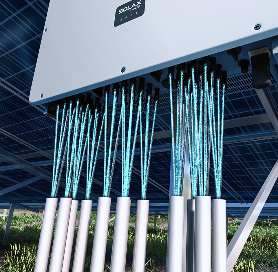 支持200%容配比及110%过载能力,确保太阳能资源得到最优利用,保障逆变器持续满功率输出。配备6路MPPT,每路支持4组光伏组串,单串电流承载能力更强,完美兼容最新一代光伏组件。